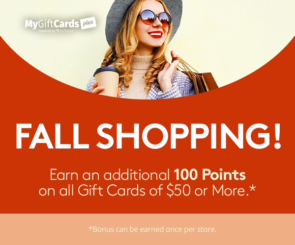 Through Friday, September 27th, each gift card brand purchase of $50 or more will earn you a 100 Point Bonus in addition to the stated Points per dollar. Shop for gift cards from your favorite retailers like eBay, Sephora, Home Depot and Lowe’s!