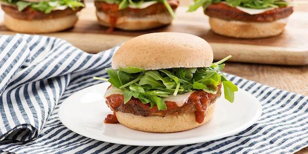 - Fill buns with burgers, Tangy Tomato Jam and arugula.